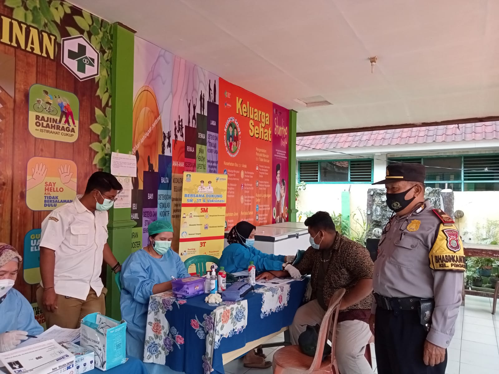 Didampingi para Bhabinkamtibmas dan Babinsa setempat, tenaga kesehatan berhasil melakukan vaksinasi kepada 104 warga dari 107 yang terdata, karena 3 diantaranya gagal menjalani vaksin akibat masalah kesehatan.