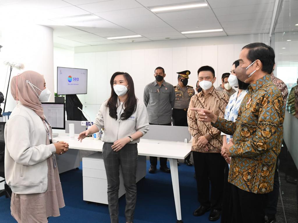 REPORTASEJAKARTA.COM Saat meresmikan Sea Labs Indonesia di Gedung Pacific Century Place, SCBD, Jakarta, pada Selasa, 1 Maret 2022, Presiden Joko Widodo berdialog secara virtual melalui konferensi video dengan para talenta muda Indonesia yang berkiprah di bidang digital di luar negeri.