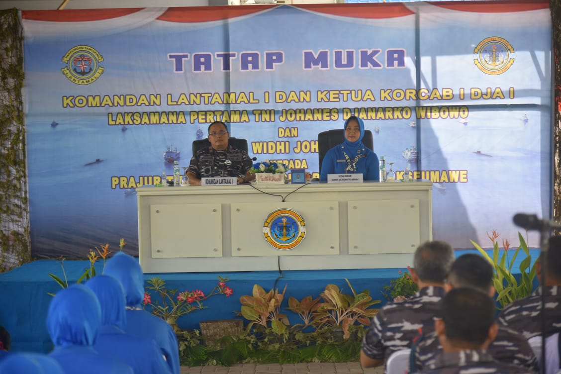 Tatap muka Komandan Lantamal I Belawan dihadiri dan diikuti oleh Palaksa Letkol Laut (KH) Irfan Hasibuan, Pasintel Mayor Marinir Darmo Sugiyono, Paspotmar Mayor (KH) Faruzal, Perwira Staf, Bintara, Tamtama, PNS, Ibu-ibu Jalasenastri Cabang 6 Korcab I DJA I dan Ibu-ibu Jalasenastri Yonmarhanlan yang berdomisili di Kota Lhokseumawe.