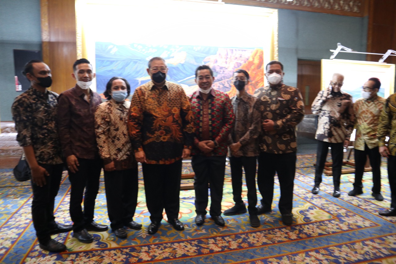 Pada acara tersebut, SBY yang memiliki hobi melukis juga menampilkan puluhan karyanya yang diletakkan sebelum ruang acara itu digelar. Para tamu undangan yang hadir pun tampak berkeliling untuk melihat lebih detail karya lukisan Presiden RI dua periode tersebut.