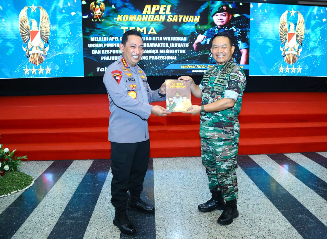 Sigit pun menegaskan, TNI-Polri saat ini terus melakukan optimalisasi dalam penguatan sinergitas dan soliditas. Hal itu diimplementasikan mulai dari pendidikan dasar, pengembangan, hingga pendidikan pengembangan umum. “Bahkan khusus dengan TNI AD kita membuat perjanjian kerja sama kegiatan terintegrasi terkait pendidikan untuk perwira. Perbantuan banyak sekali mulai dari unjuk rasa, pengamanan event baik nasional dan internasional. Kita saling mengisi kapan Polri dan TNI harus selalu berada di depan, ini berjalan dengan baik. Bagi kami, ini kita masukkan dalam program menuju Polri yang Presisi,” jelas Sigit. Bahkan, sinergitas dan soliditas TNI-Polri yang konkret, menurut Sigit, sangat dirasakan dalam penanganan serta pengendalian Pandemi Covid-19. Pasalnya, kedua lembaga ini terus berada di lini terdepan terkait hal tersebut. “Salah satu success story adalah bagaimana penanganan Pandemi Covid-19. Pada saat itu kita tidak tahu harus berbuat apa. Kita semua yang harus di belakang tiba-tiba harus ada di lini terdepan. Alhamdulilah tahun 2021 menempati tempat pertama di ASEAN terkait penanganan covid. Lalu, kita di peringkat 5 vaksinasi terbanyak. Dampaknya pandemi dapat dikendalikan. kita mulai coba PON, bulutangkis internasional, Presidensi dan lain lain,” kata Sigit. “Dan dampaknya pertumbuhan ekonomi sempat minus 5 persen meningkat menjadi 7 persen. Kuartal kedua, ketiga sempat turun tapi kuartal keempat 2021 dan kuartal pertama 2022 bisa naik 5 persen dan ini semua bisa tercapai berkat sinergitas dan soliditas TNI-Polri,” tambah Sigit menekankan. Meski begitu, Sigit mengatakan bahwa, masih ada hal lain permasalahan bangsa yang memerlukan implementasi dari sinergitas dan soliditas TNI-Polri. Diantaranya, pencegahan serta penanganan konflik sosial masyarakat. Kemudian, mitigasi penyebaran Penyakit Mulut dan Kuku (PMK). Lalu, antisipasi hingga memberikan bantuan apabila terjadinya bencana alam. Penanganan dan penanggulangan terorisme. Isu di Papua yang memerlukan peran dari TNI-Polri. Kemudian, memastikan pelaksanaan Pemilu 2024 berjalan kondusif, aman dan tertib, hingga munculnya kelompok yang menentang ideologi Pancasila. “Terkait ideologi Pancasila, harga mati untuk kita semua. Jangan sampai dari luar masuk dan mengganggu nilai-nilai yang tertanam dalam ideologi Pancasila. Justru sebaliknya, kita harus merubah ideologi Pancasila untuk kita globalkan. Karena dulu negara kita terkenal negara toleran dan ramah,” papar Sigit. Lebih lanjut, ditegaskan Sigit, sinergitas TNI-Polri juga sangat dibutuhkan untuk mengawal dan memastikan proses pembangunan Ibu Kota Nusantara di Kalimantan Timur. Mengingat, Pemerintah mengeluarkan kebijakan Indonesia sentris dengan semangat pemerataan perekonomian di seluruh Indonesia. “Hambatan pembangunan IKN menjadi kewajiban TNI-Polri mengawal kegiatan IKN, terkait distribusi bahan pembangunan, permasalahan tanah dan permasalahan lainnya,” tutup Sigit mengakhiri pemaparannya. (Red).