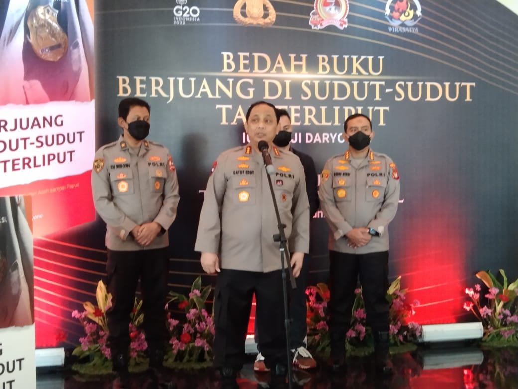 karya Iqbal Aji Daryono di Ballroom Hotel Sultan, Gatot Soebroto, Jakarta Pusat, Senin (27/6/2022). Wakapolri Komjen Pol Gatot Eddy Pramono mengatakan, dalam buku ini penulis melihat bagaimana anggota kepolisian bertugas di lapangan dengan segala kekurangan, dapat menyelesaikan persoalan-persoalan yang ada. “Penulis melihat, bagaimana anggota kita ini bertugas di lapangan dengan segala kekurangan-kekurangan yang dimiliki. Tapi mampu menyelesaikan persoalan persoalan yang ada,” ujar Gatot di Hotel Sultan, Senin (27/6/2022). Menurut Wakapolri, dalam buku ini juga bercerita tentang anggota yang bertugas di lapangan dapat mengimplementasikan restorative justice atau penyelesaian konflik yang terjadi pada masyarakat. “Bagaimana anggota kita di lapangan apakah itu ada Kapolsek, Babin Kamtibmas mampu mengimplementasikan yang namanya restorative justice,” kata Gatot. Wakapolri menjelaskan, buku ini menggambarkan hal positif dari apa yang dilakukan Polri, serta masyarakat dapat melihat apa yang dilakukan anggota Polri bisa bermanfaat untuk masyarakat. “Jadi untuk menjadi baik dan lebih baik ke depannya, buku ini menggambarkan hal-hal positif dan juga masyarakat bisa melihat, apa yang dilakukan anggota Polri yang kemudian bisa bermanfaat buat masyarakat,” tutur Gatot. Kadiv Humas Polri Irjen Pol Dedi Prasetyo yang hadir dalam acara ini berharap, perjuangan tidak selesai setelah launching buku ini, Polri juga harus beradaptasi dinamika perkembangan masyarakat. “Buku ini sedikit banyak menggambarkan tentang bagaimana potret anggota polisi berjuang di sudut-sudut yang tidak terliput dari Aceh hingga Papua. Harapan saya juga kita tidak boleh puas terhadap kegiatan ini jadi ketika buku ini sudah dilaunching, kemudian selesai. Polisi harus beradaptasi terhadap dinamika perkembangan masyarakat,” paparnya. (Red).