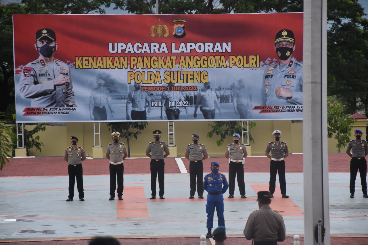 Pagi ini Kapolda Sulteng Irjen Pol. Drs. Rudy Sufahriadi menerima laporan kenaikan pangkat personil Polda Sulteng yang berlangsung di Lapangan Apel Mako Polda Sulteng di Palu, Kamis (30/6/2022)