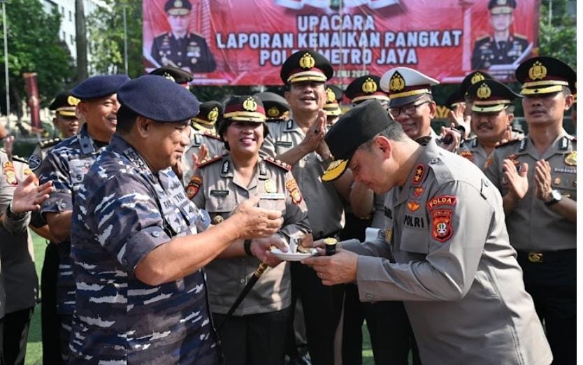 REPORTASEJAKARTA.COMJAKARTA, 1 Juli 2022,— Panglima Komando Armada Republik Indonesia (Pangkoarmada RI) Laksamana Madya TNI Abdul Rasyid K. memberikan kejutan kepada Kapolda Metro Jaya Irjen Pol Fadil Irman dalam peringatan Hari Bhayangkara ke-76 di Mako Polda Metro Jaya, Jl. Sudirman Jakarta Pusat. Jumat (1/7/22)