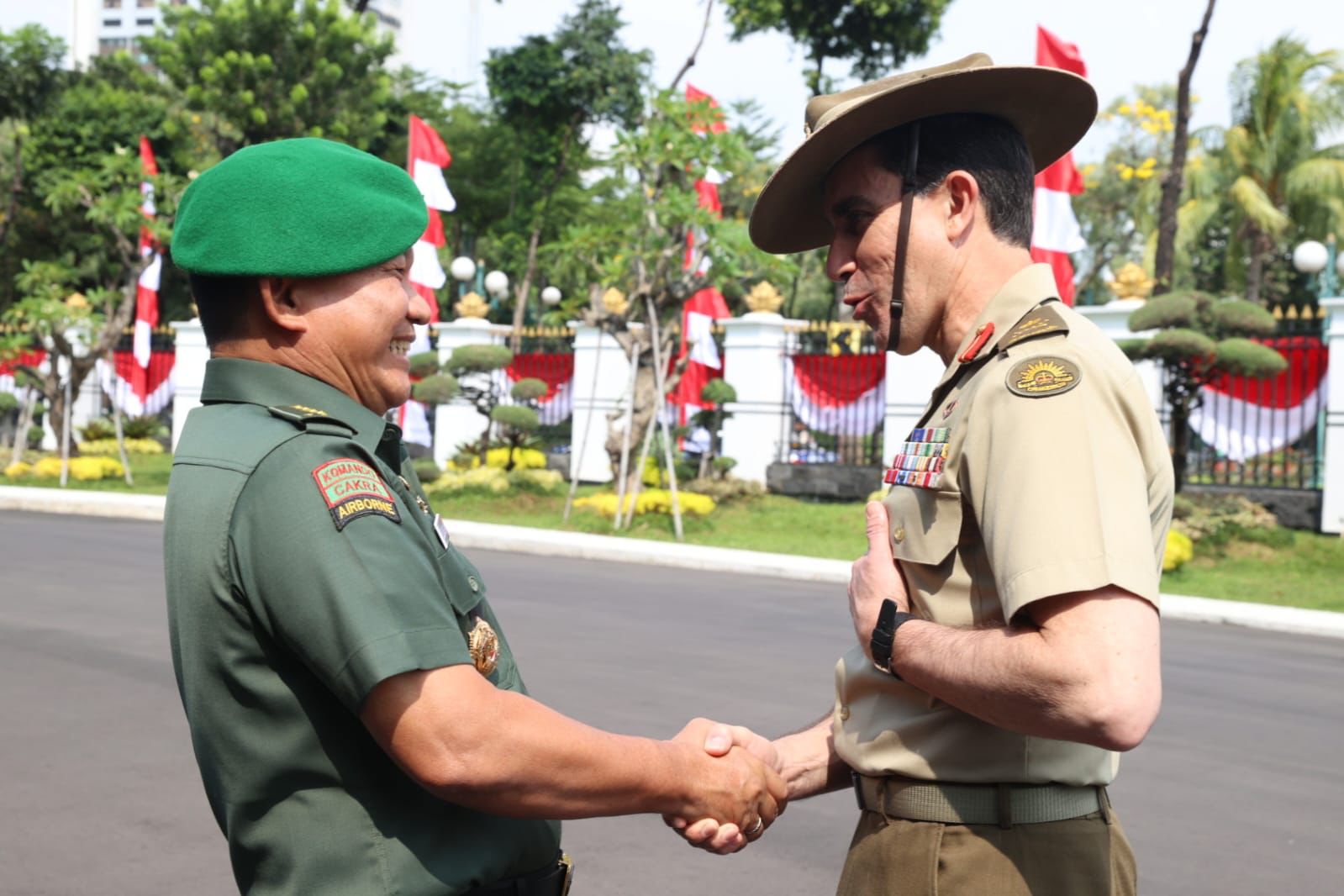 REPORTASE JAKARTAJAKARTA – Kepala Staf Angkatan Darat (Kasad) Jenderal TNI Dr. Dudung Abdurachman menerima kunjungan kehormatan Kepala Staf Angkatan Darat Australia Letjen Simon Stuart di Mabesad Jakarta, Kamis (4/8/2022).