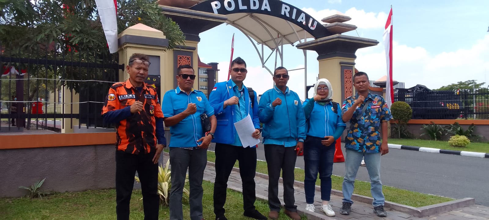 Rombongan KNPI RIAU Kepemimpinan Ketua Larshen Yunus langsung bergegas menuju Sentra Pelayanan Kepoisian Terpadu (SPKT) Polda Riau.