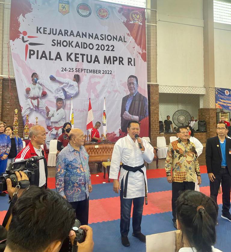 REPORTASE JAKARTADEPOK – Ketua MPR RI sekaligus Wakil Ketua Umum Partai Golkar Bambang Soesatyo bersama Pengurus Besar Perguruan Karate Shotokan Kandaga Indonesia (PB Shokaido) menyelenggarakan Kejuaraan Nasional (Kejurnas) Shokaido 2022 memperebutkan Piala Ketua MPR RI. Diikuti sekitar 900 karateka dari berbagai perguruan Shokaido yang tersebar di 16 provinsi seluruh Indonesia, Kejurnas di gelar dari tanggal 24-25 September 2022 di Cilodong, Depok.