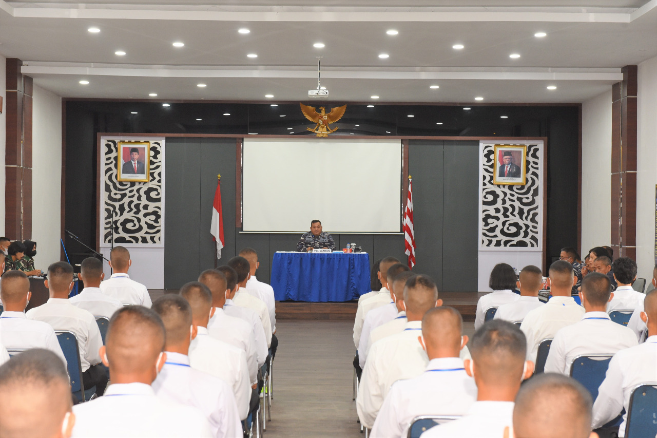 REPORTASE JAKARTA BELAWAN – Komandan Pangkalan Utama TNI Angkatan Laut (Danlantamal) I Laksamana Pertama TNI Johanes Djanarko Wibowo yang diwakilkan Pjs. Wadan Lantamal I Kolonel Laut (P) Gemma Eka Putra., M.Tr. Opsla., CIQnR., memberikan pengarahan, motivasi dan semangat kepada seluruh Calon Bintara (Caba) PK Pria dan Wanita TNI Angkatan Laut Gelombang II TA 2022 sebelum mengikuti rangkaian kegiatan seleksi tingkat pusat, bertempat di Gedung Yos Sudarso Mako Lantamal I, Jalan Serma Hanafiah No. 01 Belawan, Medan, Sumatera Utara, Selasa (27/09/2022).