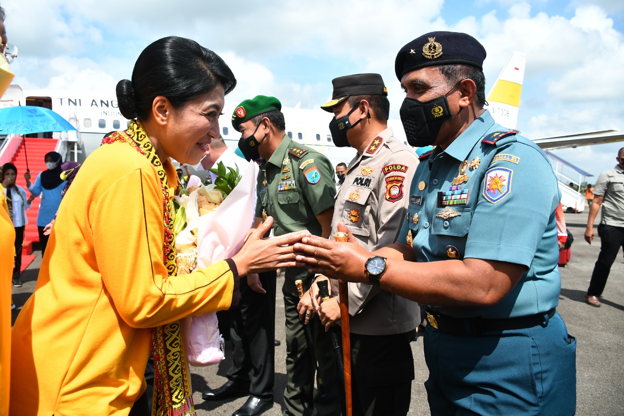 REPORTASE JAKARTAMEMPAWAH – Lantamal XII,- Komandan Lantamal XII Laksamana Pertama TNI Suharto, S.H., M.Si. (Han)., beserta Ketua Korcab XII DJA I Ny. Reni Suharto menyambut kedatangan Ketua Umum Dharma Pertiwi Ny. Hetty Andika Perkasa beserta rombongan di Lanud Supadio, Kabupaten Kubu Raya, dalam rangka kunjungan kerja di Provinsi Kalimantan Barat, Rabu (28/09/2022).
