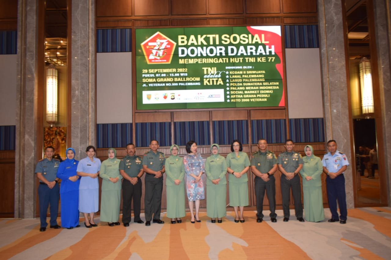 REPORTASE JAKARTAPALEMBANG – Komandan Lanal Palembang Kolonel Laut (P) Widyo Sasongko, S.E., M. Tr. Hanla., beserta istri menghadiri Kegiatan Donor Darah dalam rangka Peringatan HUT Ke-77 TNI Tahun 2022 bertempat di S,osial Market Grand Ballroom, Jalan Veteran No. 999 Palembang, acara tersebut diikuti oleh ± 400 orang, Kamis (29/09/2022).