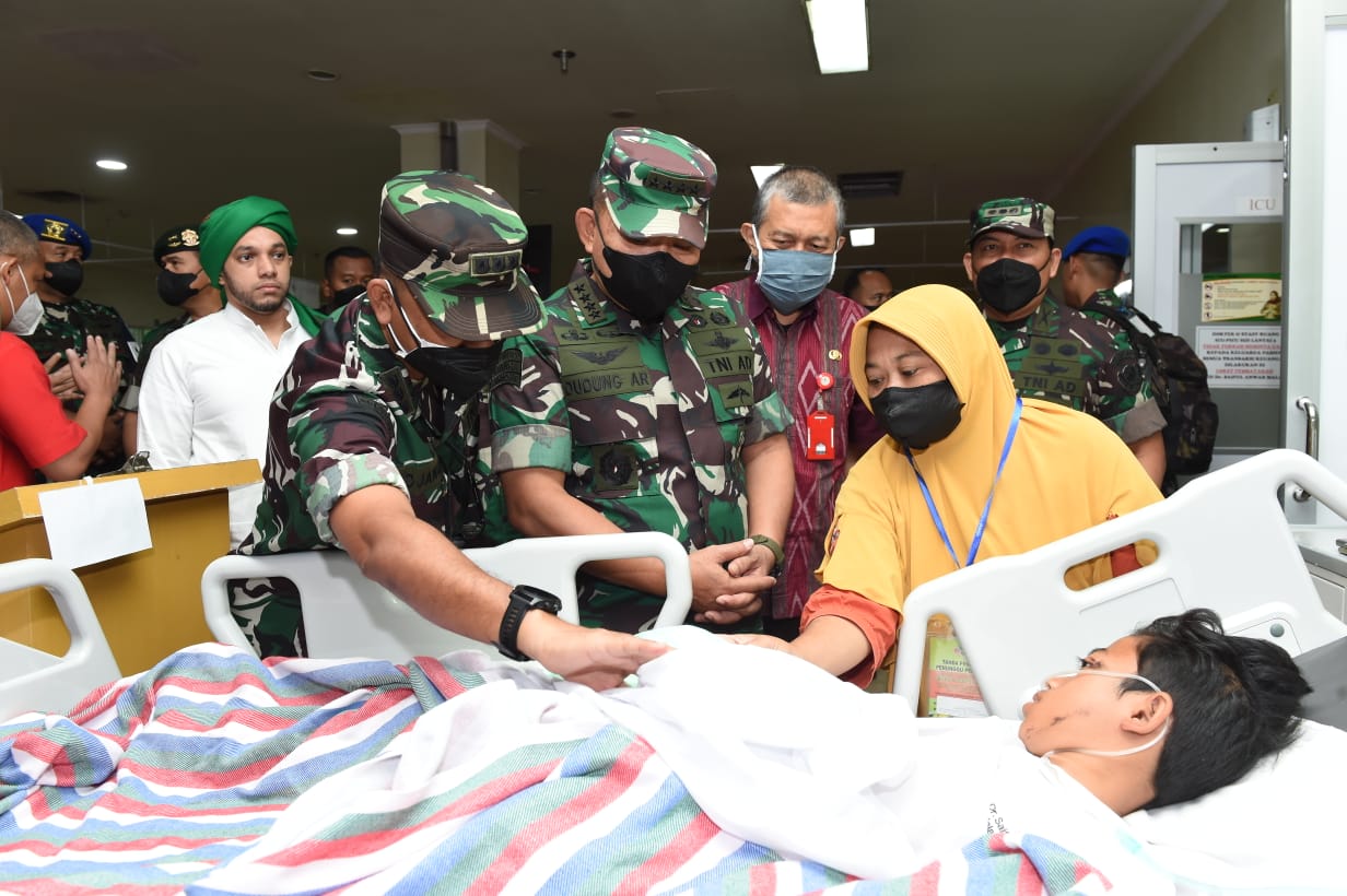 “Sengaja saya datang ke rumah sakit untuk melihat para korban kejadian Kanjuruhan. Ada beberapa yang masih mendapatkan perawatan di ICU dan beberapa sudah di ruang perawatan. Saya sebagai Kepala Staf Angkatan Darat mendoakan, semoga yang dirawat segera sembuh dan selalu diberikan kesehatan,” ujarnya.