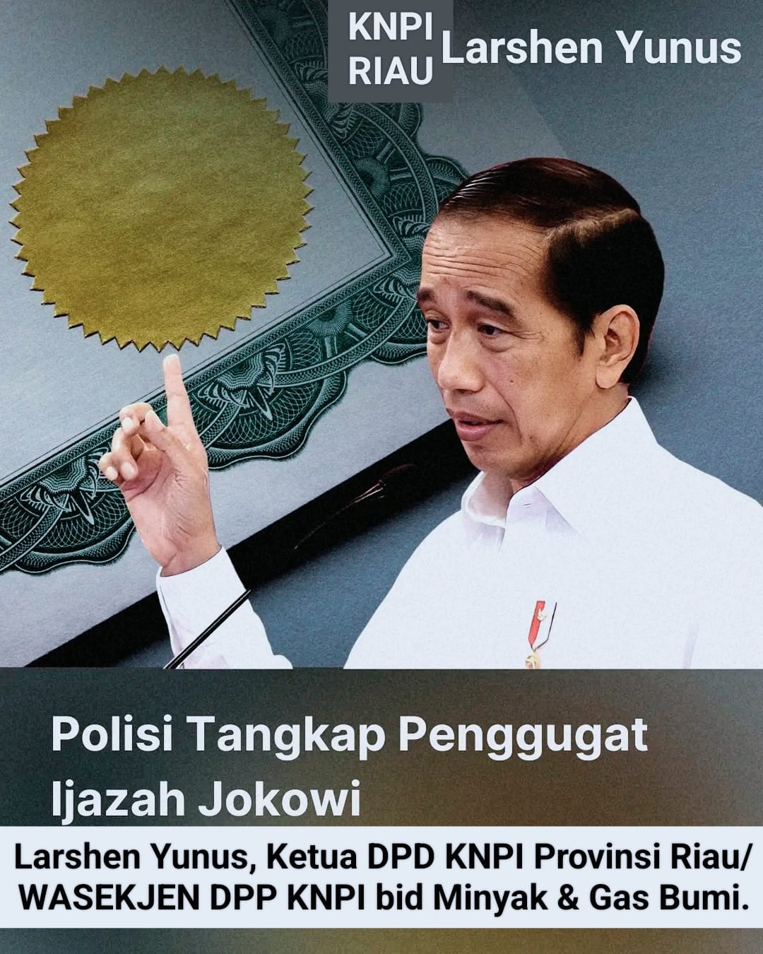REPORTASE JAKARTAPEKANBARU— Komite Nasional Pemuda Indonesia (KNPI) Dewan Pengurus Daerah (DPD) Provinsi Riau turut berkomentar atas ditangkapnya dua orang Penggugat Ijazah Presiden Republik Indonesia, Ir H Joko Widodo.