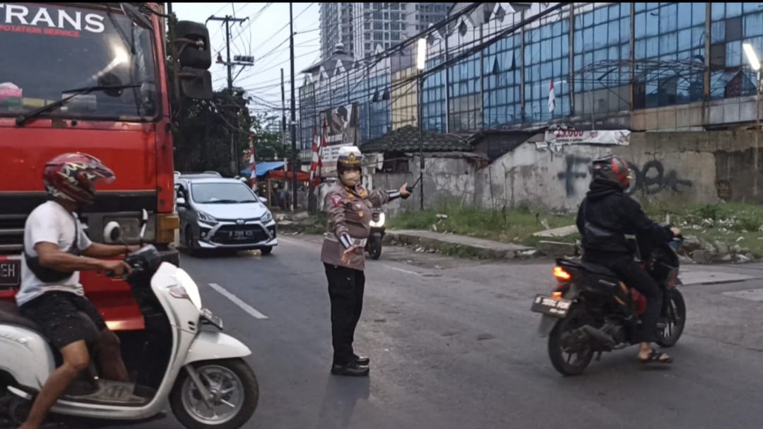 Tidak lama berselang, Kanit Lantas Polsek Bekasi Timur AKP. Farida juga tiba di lokasi, segera membantu anggotanya mengatur jalan.