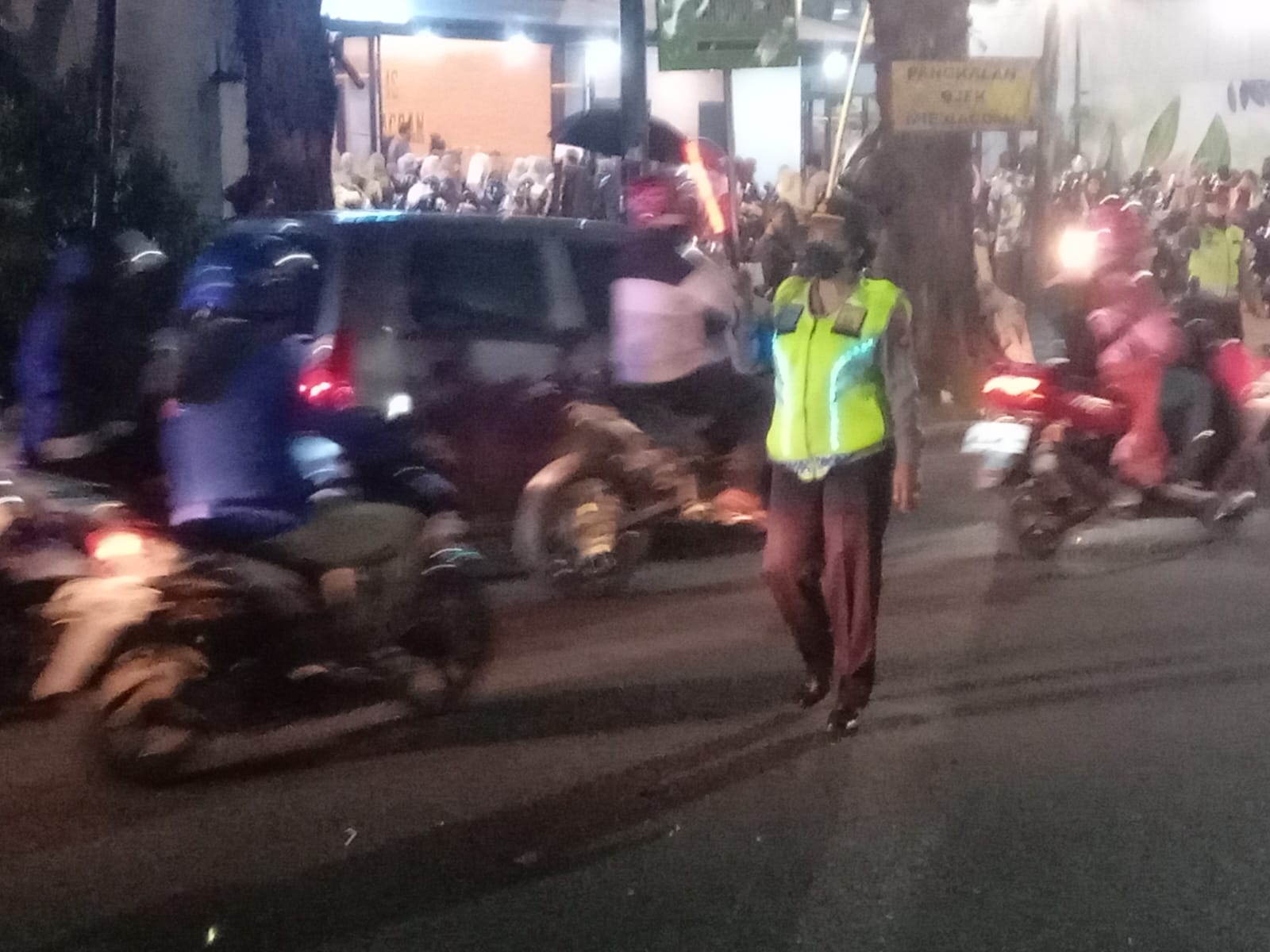 Pengaturan Lalulintas Sore hingga malam hari dimulai dari pukul 16.30 wib hingga pukul 21.00 wib pada hari sabtu malam (22/10) di TL Pertigaan BRI Juanda, Bekasi Timur dengan Padal Kasie Humas Polres Metro Bekasi Kota Kompol Erna Ruswing Andari dan Polwan Polres Metro yang mendampingi Iptu Sri Moeljati dan Aipda Sri Endang.