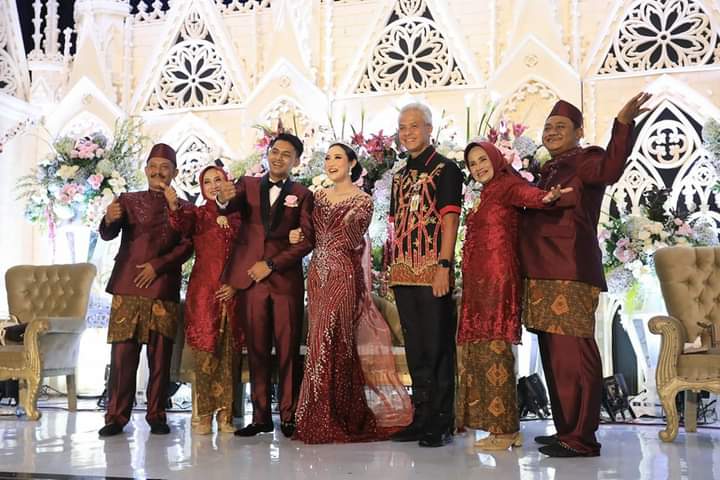 Ganjar Pranowo kemudian langsung menghampiri Yeni Inka dan suaminya yang sedang berdiri di atas pelaminan. Ganjar Pranowo terlihat menyalami mempelai pengantin dan orang tua serta memberikan ucapan selamat.