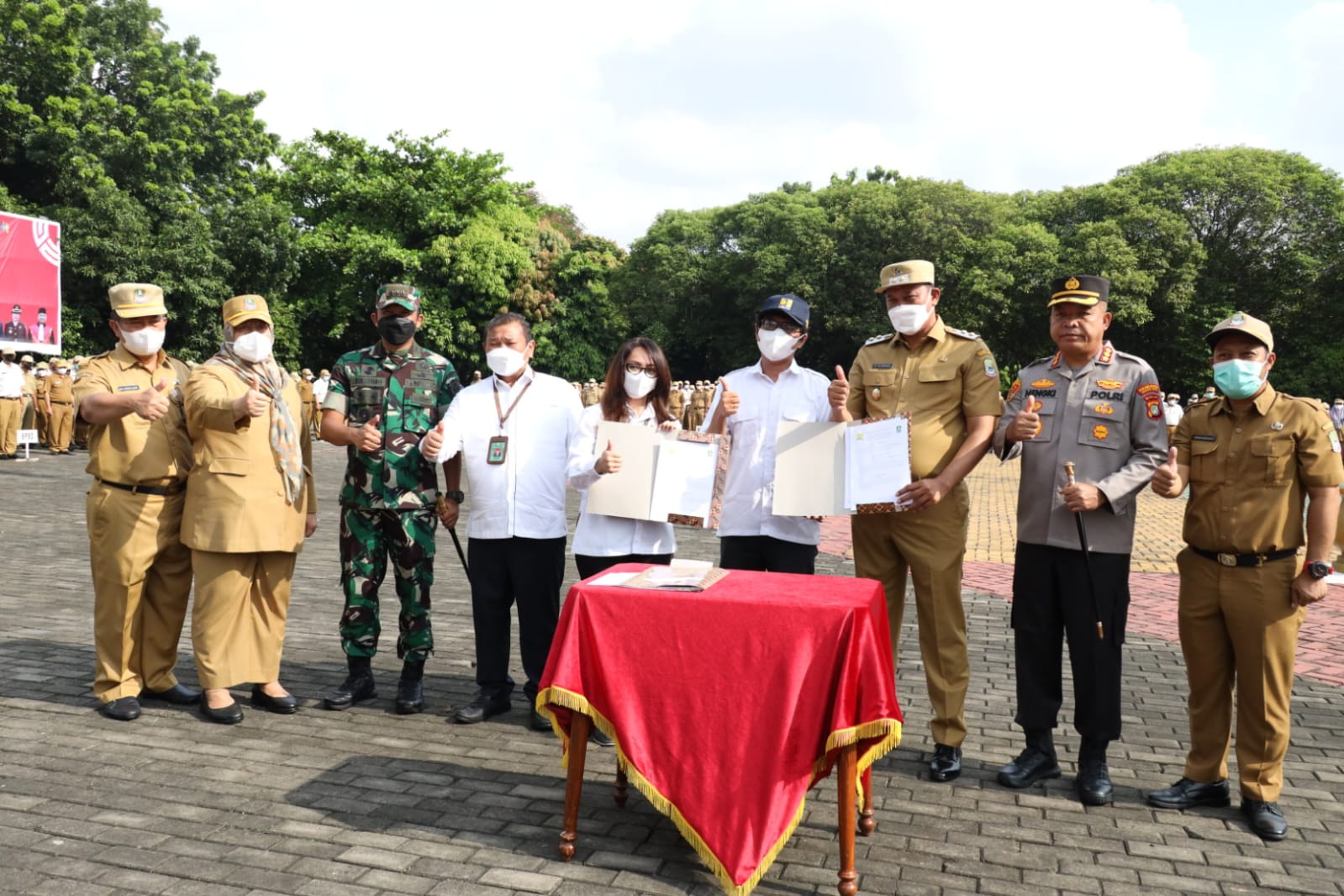 Pada apel kali ini dirangkai dengan penandatanganan kerjasama dan penyerahan sertifikat hak guna bangunan dari Pemerintah Kota Bekasi kepada Polres Metro Bekasi Kota dan Pengadilan Negeri Kota Bekasi.