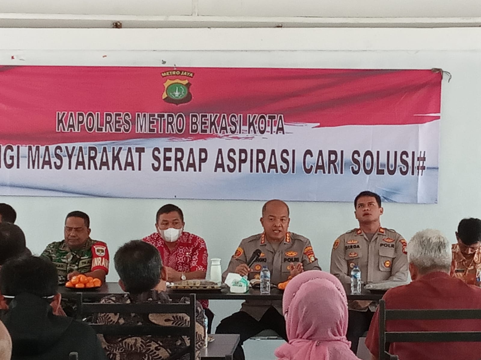 Kapolres menjelaskan kegiatan ini untuk menyerap aspirasi langsung dari masyarakat, apa yang menjadi harapan-harapan dari warga Kecamatan Jatisampurna yang ada lima wilayah kelurahan dan masyarakat antusias menghadapi acara ini.