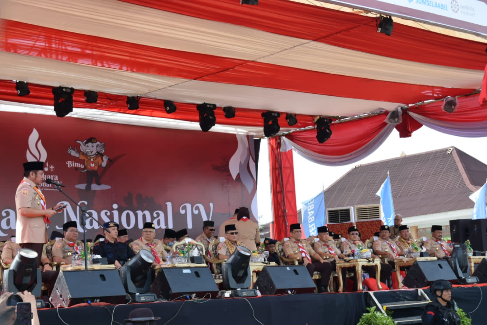 Hadir dalam kegiatan tersebut yakni, Ketua Kwartir Nasional Gerakan Pramuka/Direktur Utama Bulok Nasional Komjen Pol (Purn) Drs. Budi Waseso, Aspotdirga Kasau Marsda TNI Bowo Budiarto, S.E., CHRMP., Aspotmar Kasal Mayjen TNI (Mar) Nur Alamsyah, Kakorbinmas Baharkam Polri Irjen Pol Hary Sudwijanto, S.I.K., M.Si., Sekretaris Jendral Kwartir Nasional Gerakan Pramuka Mayjen (Purn) Bachtiar Utomo, Gubernur Sumatera Selatan H. Herman Deru, S.H., M.M., Wakil Gubernur Sumsel Mawardi Yahya, Kapolda Sumsel Irjen Pol Albertus Rachmad Wibowo, Wakapolda Sumsel Brigjen Pol Rudi Setiawan, S.I.K., M.H., Pangdam ll/Sriwijaya diwakili Perwira Ahli Kasdam Kolonel Inf Jefson Marisono, S.I.P., Ketua Kwartir Daerah Gerakan Pramuka Sumatera Selatan Drs. H. Riza Fahlevi, M.M., Komandan Lanud SMH Kolonel Pnb Sigit Gatot Prasetyo, M.M., O.A.S., Danlanal Palembang Kolonel Laut (P) Widyo Sasongko, S.E., M.Tr.Hanla., Danrem 044/Gapo diwakili Kapenrem Kapten Arm Edi Hermanto, Kajari Palembang diwakili Ibu Riaman Juwite, Kapolrestabes Palembang Kombes Pol Mokhamad Ngajib, S.I.K., M.H., Dandim 0418/Palembang diwakili Danramil 01/Makrayu, Kapten Inf Indra Sakti Ritonga, Kajari Kota Palembang Eko Adhyaksono S.H., M.H., Para Kepala Dinas, Kaban, Asisten Staf Ahli di Pemprov Sumsel dan Kota Palembang dan Para Ketua Kwarda dan Ketua Kwarcab Gerakan Pramuka se Indonesia.