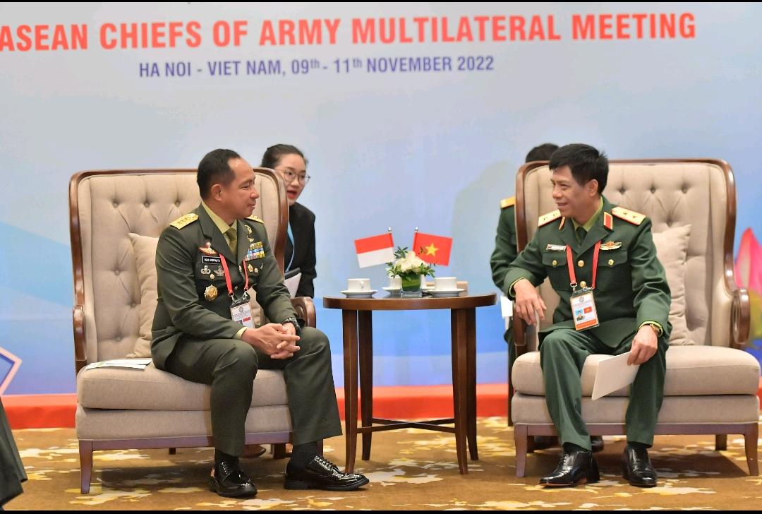REPORTASE JAKARTAJAKARTA – Wakil Kepala Staf Angkatan Darat (Wakasad), Letjen TNI Agus Subiyanto, S.E.,M.Si., menghadiri Bilateral _Meeting_ dengan empat Kasad negara ASEAN. Dalam pertemuan yang diselenggarakan di Melia Hotel, Hanoi, Vietnam tersebut, Wakasad bertemu dengan Kasad Kamboja, Vietnam, Thailand dan Brunei Darusalam pada Rabu (9/11/2022).