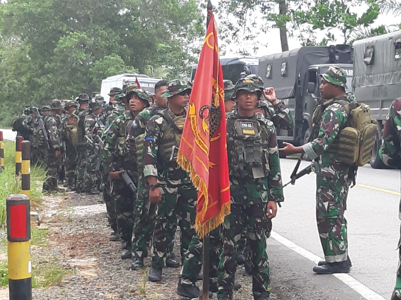 hari kedua menempuh jarak sejauh 26 KM dan hari ketiga menempuh jarak sejauh 11 KM dengan finish di Aruk dilanjutkan dengan syukuran Hari Ulang Tahun Marinir ke-77,” jelas Wadan Lantamal XII. “Kegiatan napak tilas yang menempuh jarak sejauh 77 KM ini merupakan salah satu bagian dalam rangka memperingati Hari Ulang Tahun Korps Marinir ke-77 Tahun 2022 yang jatuh pada tanggal 15 November 2022. Pemilihan tempat pelaksanaan napak tilas di wilayah perbatasan Indonesia di Desa Tanjung Gilang kecamatan Galing menuju Aruk perbatasan Republik Indonesia dengan Malaysia adalah sebuah rencana pilihan yang tepat, karena di wilayah ini lokasi pertempuran pasukan KKO bersama sukarelawan dalam perang konfrontasi tahun 1963-1966,” lanjutnya. “Perang Konfrontasi Indonesia Malaysia di perbatasan Kalimantan bagian utara dikenang dengan nama operasi Dwikora peristiwa Dwikora adalah sejarah perjuangan pasukan KKO bersama sukarelawan,” lanjut Wadan. “Kegiatan napak tilas ini tidak hanya mengenang jasa para pejuang Dwikora, akan tetapi kegiatan ini bertujuan memberikan edukasi kecintaan terhadap negara dan bangsa khususnya kepada anak bangsa sebagai generasi muda Indonesia,” jelas Kolonel Budiarso, S.E. Harapan juga disampaikan Wadan Lantamal XII Pontianak, “Semoga kegiatan ini menjadi agenda rutin dan menjadi kebanggaan bagi masyarakat di perbatasan Indonesia,” harapnya. Pelaksanaan Napak Tilas Aruk 77 KM untuk mengenang sejarah Yonif 5 KKO AL Tahun 1974 pada saat melaksanakan Operasi Dwikora di Aruk daerah perbatasan Indonesia dan Malaysia, yang baru pertama kali dilaksanakan ini selaras dengan 9 program prioritas Kepala Staf Angkatan Laut (Kasal) dan kebijakan Kasal Laksamana TNI Yudo Margono, S.E., M.M., yakni