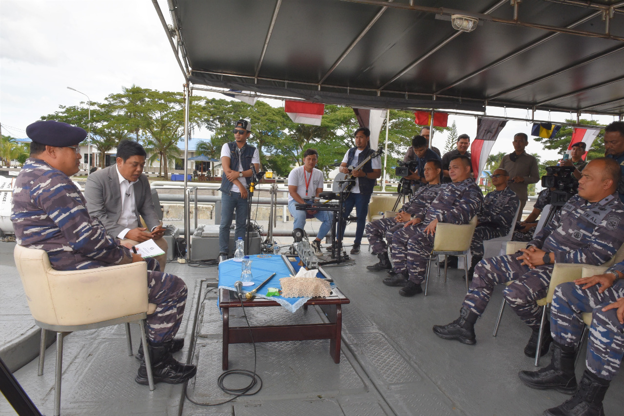 BELAWAN — TNI AL, Lantamal I, 16 November 2022,– Komandan Lantamal (Danlantamal) I Belawan Laksamana Pertama TNI Johanes Djanarko Wibowo melaksanakan dialog khusus dengan TVRI Sumatera Utara di Buritan KAL Viper I-1-63, Selasa (15/11/2022).