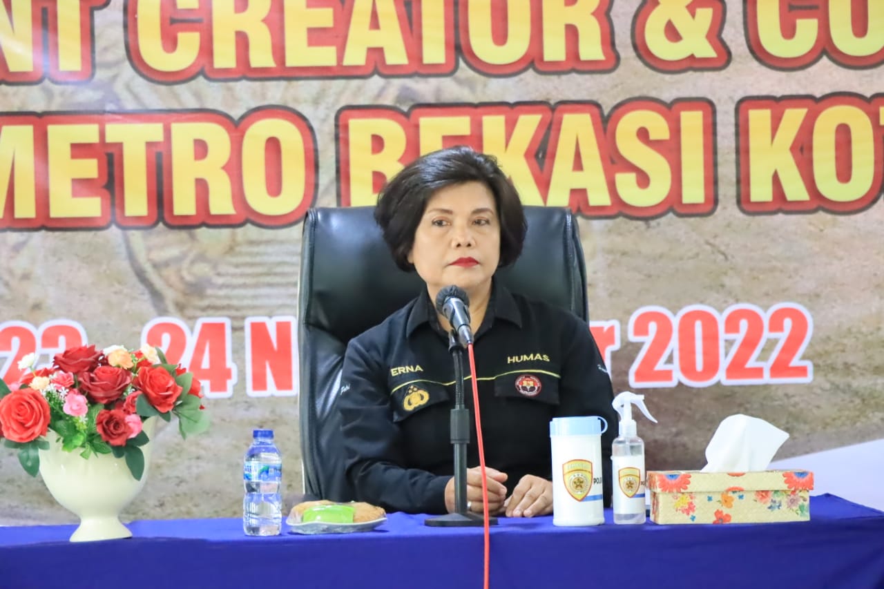 Kasi Humas Polres Metro Bekasi Kota Kompol Erna Ruswing Andari dalam paparannya menjelaskan tentang tugas pokok dan fungsi humas.