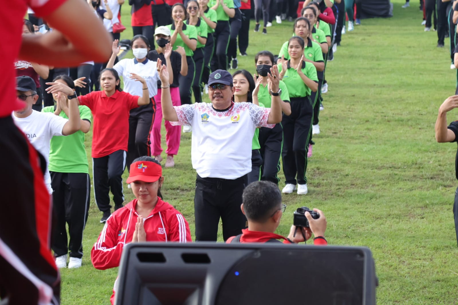 Acara senam yang diikuti ratusan peserta yang merupakan siswa, pegawai Pemprov Bali dan masyarakat umum dimeriahkan dengan stan UMKM, donor darah dan pembagian door prize. (Red).