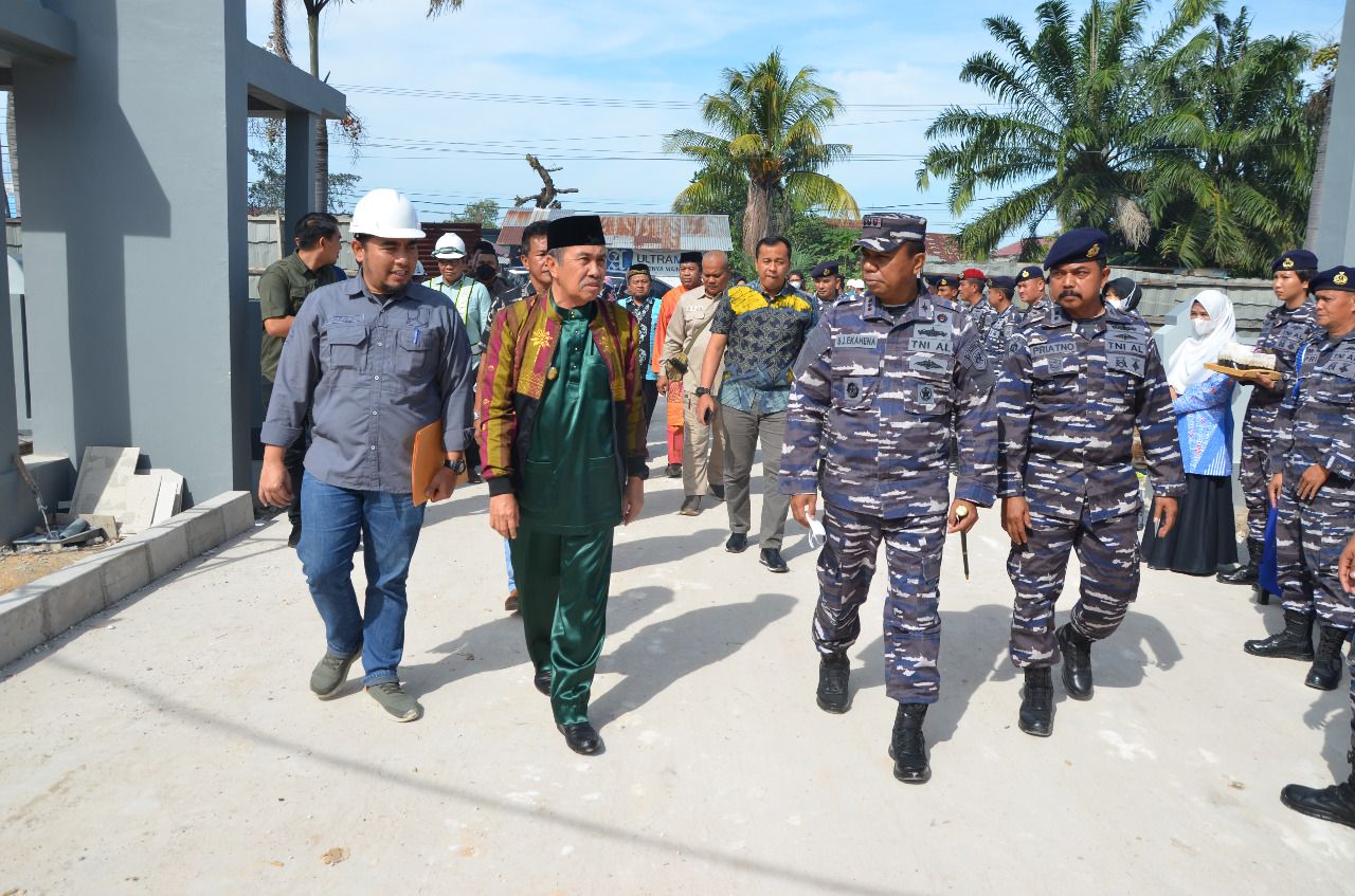 Kunjungan Gubernur Riau disela-sela kesibukan para pekerja bangunan yang cukup megah, ingin melihat langsung progres yang telah dicapai dan berharap agar pembangunan Mako Lanal Dumai dapat diselesaikan sesuai jangka waktu kontrak yang telah ditentukan.