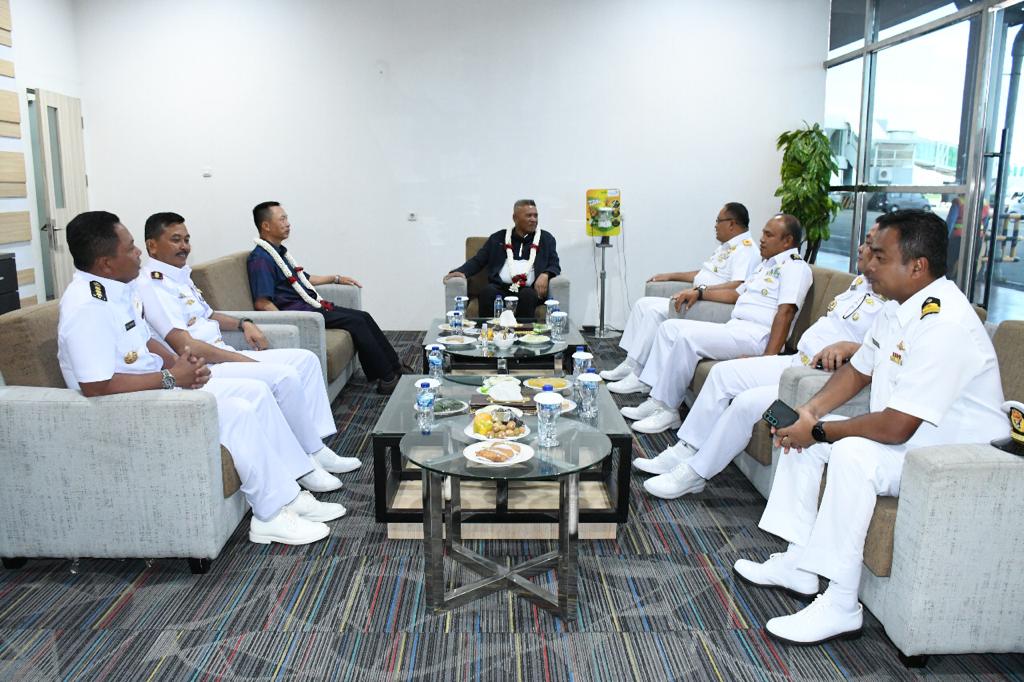 TNI AL, Lantamal I — Komandan Lantamal I Laksamana Pertama TNI Johanes Djanarko Wibowo didampingi Wadan Lantamal I beserta Pejabat Utama Lantamal I meyambut kedatangan Panglima Armada Barat TLDM Laksamana Madya Datuk Abu Bakar Bin Md Ajis beserta rombongan, bertempat di VIP Room Bandara Kualanamu,Deli Serdang, Sumatera Utara. Rabu, (30/11/2022).