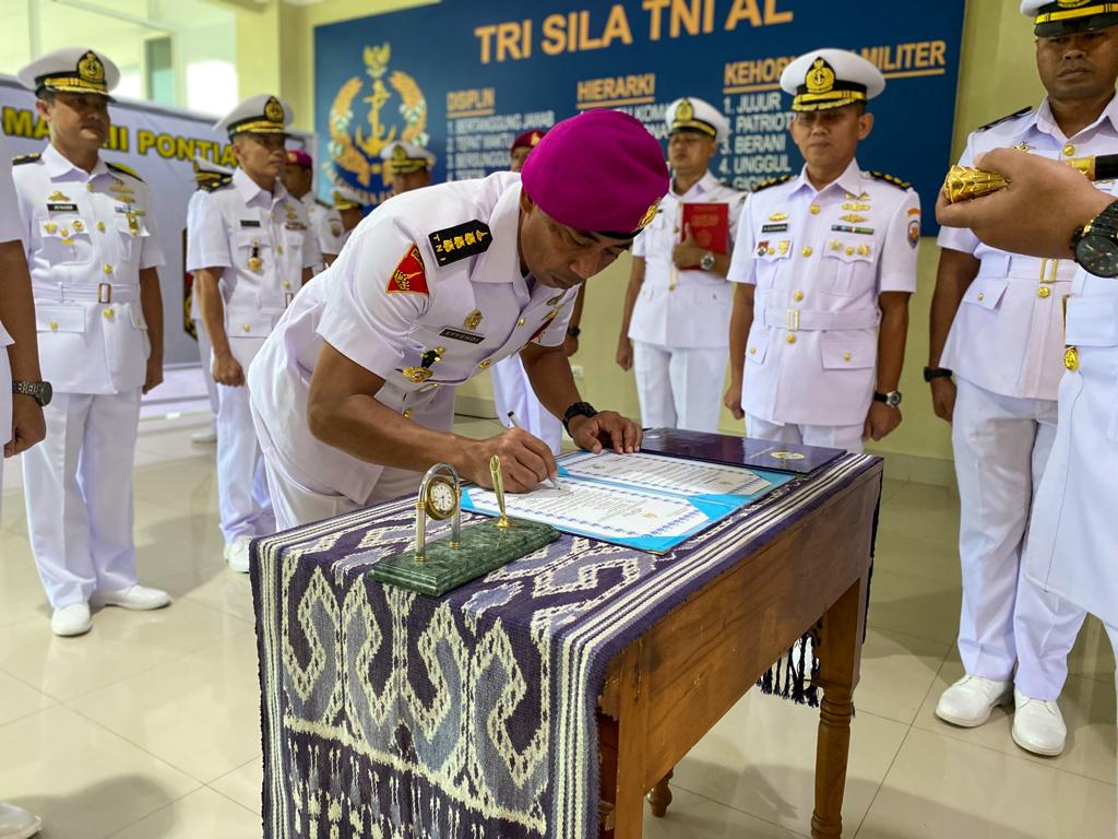 serta kemampuan seluruh komponen organisasi sebagai satu kesatuan tim work yang solid dan buatlah perubahan yang sifatnya membangun dengan ide-ide yang bagus untuk kebaikan dan keberhasilan Lantamal XII Pontianak,” pungkas Danlantamal XII. Danlantamal XII juga mengarahkan kepada pejabat yang baru untuk melanjutkan apa yang sudah dikerjakan oleh pejabat sebelumnya dan berpesan untuk menyelesai persoalan yang belum tuntas. Pernyataan Danlantamal XII selaras dengan perintah harian Kepala Staf Angkatan Laut (Kasal) Laksamana TNI Yudo Margono โBerani berubah menjadi lebih baik dengan meninggalkan budaya rutinitas yang tidak produktif.” Acara sertijab ini juga dihadiri oleh para Pejabat Utama Lantamal XII, Kadis, Kasatker, Dandenma dan selesai acara pokok diteruskan acara ramah tamah. (Red).