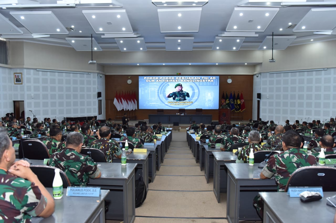 REPORTASE JAKARTABANDUNG — Sebagai kekuatan matra darat, keberadaan TNI AD tidak terlepas dari perkembangan lingkungan strategis yang terjadi saat ini. Sehingga kebijakan-kebijakan TNI AD harus mampu menghadapi perkembangan lingkungan strategis internasional, regional dan nasional serta menjadi solusi mengantisipasi potensi ancaman yang ditimbulkan.