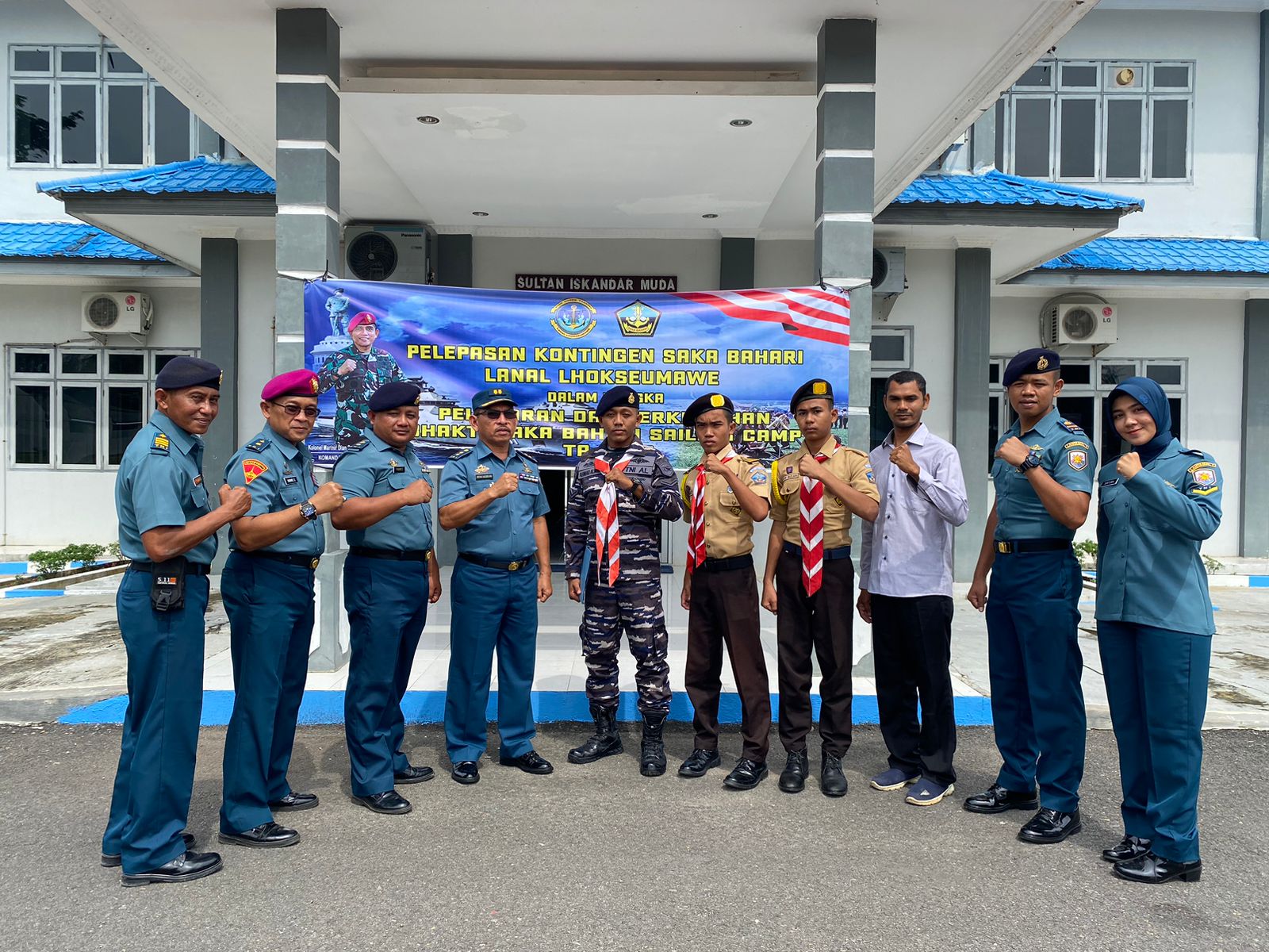 Bertempat di Mako Lanal Lhokseumawe, Jalan Raya PT. KKA, KM 2, Kelurahan Paloh Igeuh, Kecamatan Dewantara, Kabupaten Aceh Utara, Komandan Lanal Lhokseumawe Kolonel Marinir Dian Suryansyah, S.E., M.Tr.Hanla., M.M., yang diwakili oleh Palaksa Lanal Lhokseumawe Letkol Laut (KH) Irfan Hasibuan, S.Sos., M.M., dan didampingi Paspotmar Mayor Laut (KH) Fahrizal melepas 3 (tiga) peserta Kontingen Pramuka Saka Bahari binaan Lanal Lhokseumawe untuk melaksanakan Program Sailing Camp TA. 2022, Rabu (07/12/2022). Peserta Kontingen Saka Bahari Binaan Lanal Lhokseumawe yang teridiri dari 2 (dua) putra atas nama Robi Maulana dan Rusdi Maulana dengan 1 (satu) Pembina Serda Bah Ahmad Alwani, yang akan mengikuti Pelayaran dan Perkemahan Bhakti Saka Bahari Tingkat Nasional yang diselenggarakan oleh TNI AL pada tanggal 9 hingga 11 Desember 2022 di Pulau Damar Kepulauan Seribu Jakarta. Komandan Lanal Lhokseumawe menyampaikan bahwa kegiatan ini menindaklanjuti perintah Pangkoarmada I/II/III kepada jajarannya baik Lantamal dan semua Lanal agar mendukung kegiatan tersebut dan mengirimkan perwakilan personil Pramuka Saka Bahari dari wilayah kerja masing-masing. Kegiatan ini dilakukan sebagai upaya dari Pimpinan TNI AL dalam rangka meningkatkan pembinaan generasi muda yang cinta bahari, dan merupakan salah satu program dari Dispotmaral. Adapun agenda yang dilaksanakan dalam kegiatan pelayaran dan Perkemahan Bhakti Saka Bahari TA. 2022 adalah pembekalan materi dan wawasan kebangsaan, bahaya narkoba, miras, sosialisasi profil TNI AL, materi tentang kesehatan HIV/AIDS dan berbagai materi terkait Kebaharian. “Sebagai generasi muda harus memiliki semangat dan menjaga nama baik dalam setiap mengikuti kegiatan serta selalu memperlihatkan jiwa bahari selama mengikuti kegiatan,” ujar Danlanal Lhokseumawe. Sehubungan dengan kegiatan tersebut, Komandan Lanal Lhokseumawe berpesan kepada anggota Pramuka Saka Bahari Binaan Lanal Lhokseumawe supaya mengenal lebih dekat dunia kemaritiman dan membangun ajang silaturahmi antar anggota Pramuka Saka Bahari, serta menyebarkan rasa kecintaan kebaharian dikalangan masyarakat,” lanjutnya. Selain itu, diharapkan juga bisa membangkitkan persatuan dan kesatuan di kalangan pemuda dalam kerangka NKRI, melalui proses pembinaan pada generasi muda Saka Bahari.