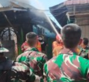 REPORTASE JAKARTATNI AL, Lanal Dumai,- Pangkalan TNI AL Dumai gerak cepat dalam membantu pemadaman kebakaran rumah H. Indra yang berada diseberang Mako Lanal Dumai, Jalan Siak, Kelurahan Buluh Kasap, Kecamatan Dumai Timur, Kota Dumai, Senin (26/12/2022).