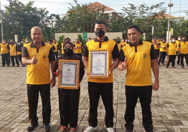 Selesai pelaksanaan apel Pagi, Kapolres Kombes Pol Hengki, S.I.K, M.H, laksanakan penyerahan piagam dan plakat juara lomba Kebersihan dan keindahan mako tingkat Polsek dan Polres se Polda Metro Jaya dalam rangkaian kegiatan HUT ke-73 Polda Metro Jaya.