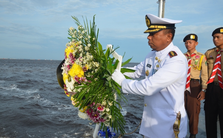 REPORTASE JAKARTATNI AL, Lanal Dumai,- Pangkalan TNI AL Dumai melaksanakan Upacara Tabur Bunga di laut yang dipimpin oleh Komandan Lanal Dumai Kolonel Laut (P) Stanley Lekahena, M.Tr. Hanla., didampingi Ketua Jalasenastri Cabang 4 Korcab I DJA I Ny. Sandra Stanley. Kegiatan dilaksanakan disekitar Perairan Dumai menggunakan KAL Tedung I-1-37, Senin (16/01/2023).