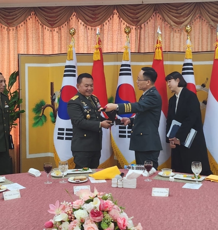 REPORTASE JAKARTASEOUL — Delegasi TNI AD yang dipimpin langsung oleh Kepala Staf Angkatan Darat (Kasad) Jenderal TNI Dr. Dudung Abdurachman melaksanakan kunjungan kehormatan kepada Chief of Republic of Korean Army (Kepala Staf Angkatan Darat Korea Selatan) Jenderal Park Jeong Hwan di ROK Army HQ, Gyeryeong, Korea Selatan, Rabu (1/2/2023).