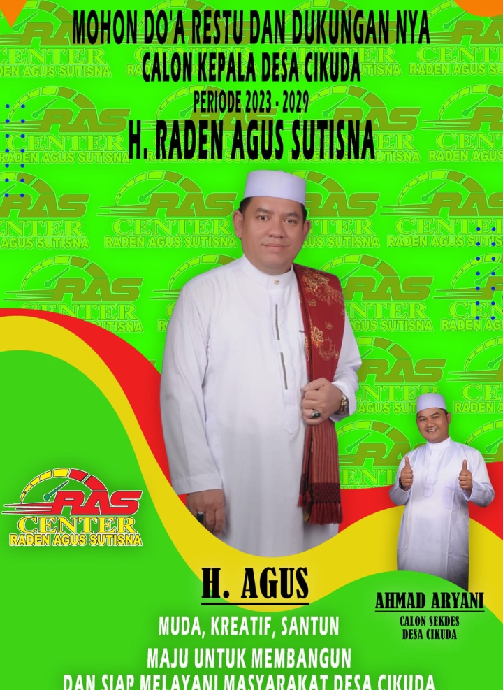 Haji Agus dengan visi bekerja dengan Muda, Kreatif, Santun, dan siap melayani masyarakat desa Cikuda , buktinya dengan mobil RAS Center sebanyak 5 unit. Yang digunakan untuk membantu warga yang terkena musibah dan dibawa ke RS, orang yang ingin melaksanakan besanan, kita sudah siapkan.