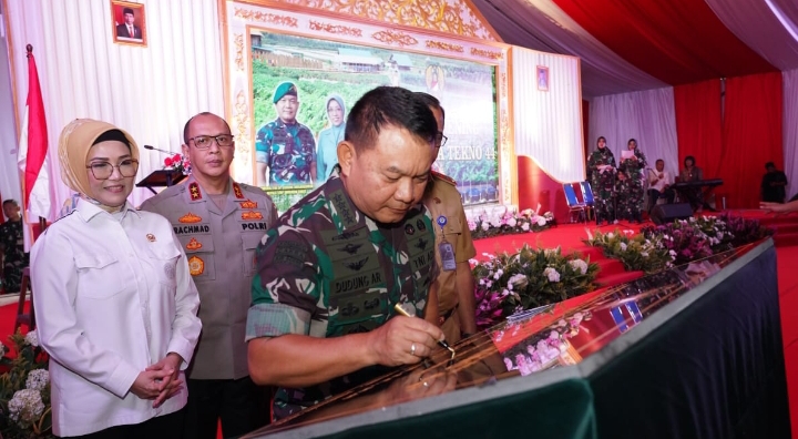 REPORTASE JAKARTAJAKARTA -– Dalam kunjungan kerjanya ke wilayah Kodam II/Sriwijaya, Kepala Staf Angkatan Darat (Kasad) Jenderal TNI Dr. Dudung Abdurachman didampingi Ketua Umum Persit Kartika Chandra Kirana (Ketum Persit KCK) Ny. Rahma Dudung Abdurachman, melaunching sekaligus meresmikan Desa Agrowisata Tekno 44 Kodam II/Sriwijaya di Desa Glebek, Kabupaten Musi Banyuasin (Muba), Sumatera Selatan, Senin (13/2/2023).