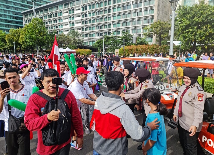 ,” kata Rusmiati di lokasi, Minggu (19/2/2023). Dit Samapta Polda Metro Jaya, kata Rusmiati, mengimbau kepada masyarakat untuk tetap menjaga protokol kesehatan covid-19. Ia juga mengimbau kepada pengunjung CFD yang membawa anak-anak untuk mendampingi putra-putrinya agar jangan sampai terlepas dari pantauan atau pendampingan. “Tadi, kami menemukan anak hilang dalam keadaan menangis (lepas dari orang tuanya) yang diamankan oleh anggota kami IPDA Dicky dan akhirnya di pertemuan kembali oleh ibu kandungnya yang mencari di depan Hotel Kempinski,” ujarnya. (Larty).