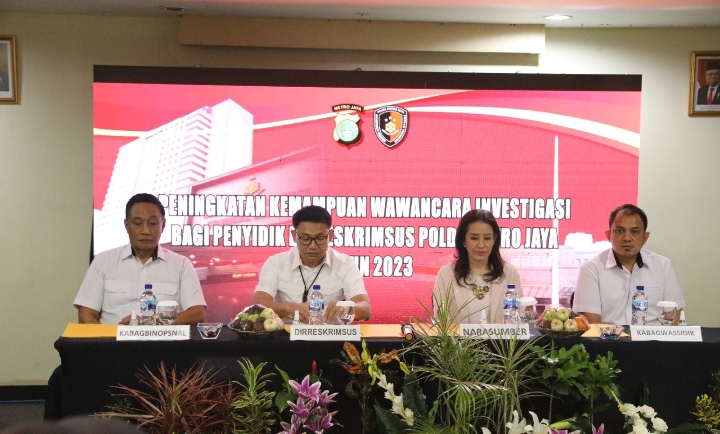 REPORTASE JAKARTAPOLDA METRO JAYA – Direktur Reserse Kriminal Khusus Polda Metro Jaya Kombes Pol Auliansyah Lubis membuka acara Pelatihan Wawancara Investigasi di Spira Room Hotel Grand Kemang, Jakarta Selatan. Rabu (15/03/2023).