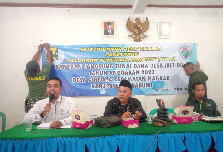 REPORTASE JAKARTASUKABUMI – Pemerintah Desa (Pemdes) Girijaya, Kecamatan Nagrak, Kabupaten Sukabumi, Jawa Barat, gelar musyawarah desa khusus (Mudesus) guna menentukan keluarga penerima manfaat program bantuan langsung tunai dana desa (BLT-DD) tahun 2023, pada Rabu (15/03/2023).