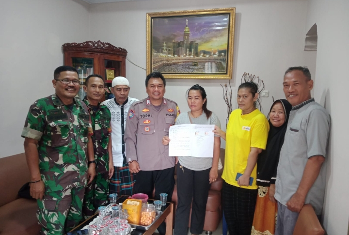 Bhabinkamtibmas bersama ketua RT 03 RW 08 Bapak Agus dibantu Babinsa Kranji Peltu JNP.Simbolon dan Sertu Susilo Widodo mempertemukan kedua belah pihak dirumah RT dan sepakat berdamai dengan disertai surat kesepakatan bersama. (Larty).