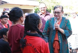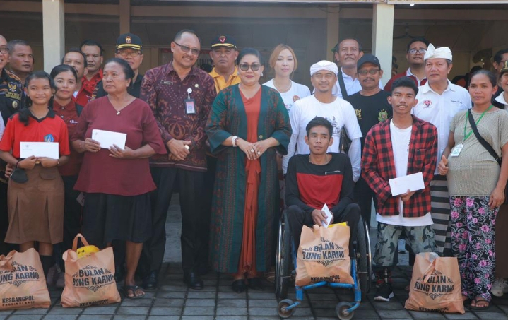 Dalam acara itu, Ketua TP PKK Provinsi Bali, Ny. Putri Koster menyerahkan bantuan paket sembako kepada empat orang penerima yang membutuhkan. Dua diantaranya berkebutuhan khusus. Bahkan, Ny. Putri Koster memberikan titipan dari Gubernur Bali Wayan Koster berupa uang tunai Rp1 juta kepada empat orang tersebut.
