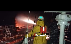 Jalesveva JayamaheJAKARTA — 27 Maret 2023 Tim Search and Rescue (SAR) TNI Angkatan Laut (TNI AL), Pangkalan Angkatan Laut (Lanal) Mataram segera melaksanakan pencarian dan pertolongan bersama tim kesehatan terhadap insiden kebakaran yang terjadi terhadap kapal pengangkut Bahan Bakar Minyak (BBM), kapal tanker MT Kristin (GT 3338) dengan muatan Pertalite 5900 KL di perairan Ampenan Mataram, Lombok, Minggu (26/03). Menurut informasi yang didapat insiden kapal terbakar tersebut terjadi saat kapal melakukan labuh jangkar. Titik api terlihat berasal dari forecastle atau mooring deck depan dan penyebab timbulnya api, saat ini masih diselidiki lebih lanjut. Dari jumlah total ABK sebanyak 17 orang, 14 orang berhasil dievakuasi dengan selamat dan saat ini berada di Depo Pertamina Ampenan, sementara 3 orang ABK yang tengah melakukan operasional jangkar sampai dengan saat ini masih dalam pencarian. Komandan Lanal (Danlanal) Kolonel Laut (P) Djawara Whimbo menjelaskan setelah mendapat informasi segera memerintahkan jajarannya untuk membantu penanggulangan kebakaran yang terjadi dan pertolongan terhadap korman. Sekitar pukul 21.10 Wita tim gabungan yang terdiri daru Lanal Mataram, Basarnas, Polair Polda NTB dan nelayan setempat berhasil memadamkan api. Rencana kapal akan di evakuasi menuju pelabuhan Lembar pada malam itu juga bila situasi memungkinkan. Lanal Mataram juga menurunkan Tim SAR untuk mencari 3 ABK yang belum diketemukan saat terjadi kebakaran dan tim kesehatan untuk memeriksa kesehatan 14 ABK lainnya yang berhasil diselamatkan. Hingga berita ini turunkan proses pencarian 3 ABK kapal tanker MT Kristin masih terus dilakukan. Langkah cepat penyelamatan yang dilakukan oleh prajurit Lanal Mataram merupakan implementasi dari perintah Kepala Staf Angkatan Laut (Kasal) Laksamana TNI Muhammad Ali yang telah menginstruksikan jajarannya agar prajurit TNI AL selalu siaga dan siap dalam merespon segala kedaruratan di masyarakat untuk melaksanakan aksi secepatnya dalam hitungan jam. (Red).