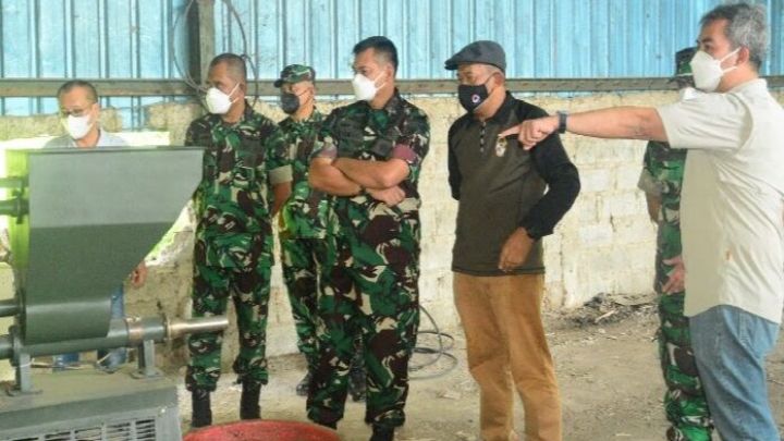 Selain meninjau kawasan pengolahan limbah plastik, Pangdam juga meninjau pemanfaatan mesin pengolah limbah sampah menjadi briket (mesin pencetak briket) di Kp. Ciburahol Desa Rajamandala Kec. Cipatat Kab. Bandung Barat.
