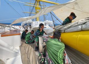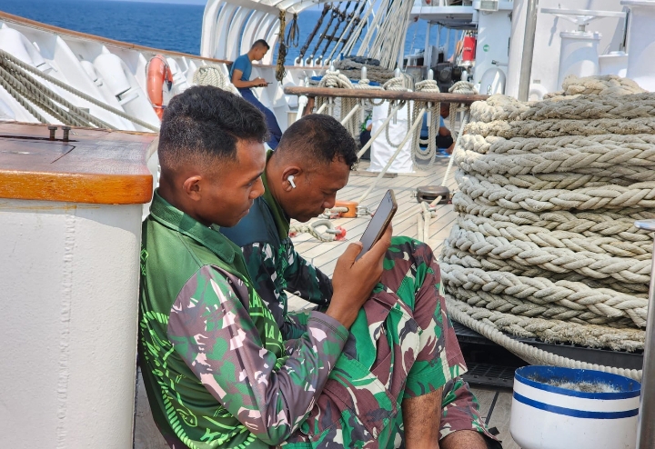 Jalesveva Jayamahe,Jakarta, 13 April 2023,—— Seketika terdengar pengumuman “SIGNAL ON”, para prajurit KRI Bima Suci yang sedang melaksanakan istirahat siang serentak bergegas menuju geladak utama KRI Bima Suci yang sedang melaksanakan pelayarannya menuju ke Sri Lanka pada Rabu (12/04). Keriyuhan yang menjadi pemandangan menarik, ketika terdengar pengumuman “SIGNAL ON” merupakan pemberitahuan melalui sistem pengeras suara bahwa dalam posisi kapal saat ini mendapatkan sinyal seluler. Serentak pada momen ini para prajurit bergegas untuk menuju geladak utama dimana mereka bisa mendapatkan akses sinyal. Hal tersebut dimanfaatkan oleh para prajurit di jam istirahatnya untuk menghubungi keluarga, sanak saudara maupun rekan terdekat mereka. Kesempatan ini sangat jarang ditemui para prajurit TNI Angkatan Laut (TNI AL) ketika berada ditengah laut saat berlayar. Oleh karena itu kesempatan yang baik ini tidak mereka sia-siakan untuk menyempatkan diri memberikan maupun menanyakan kabar kepada keluarga dan kerabat. Salah seorang prajurit KRI Bima Suci, Serka BAH Supardjono yang menjabat sebagai Bintara Utama (Bama) menyampaikan bahwa ini merupakan kesempatan yang langka saat melaksanakan misi pelayaran. “Momen ini hanya bisa didapatkan oleh para prajurit ketika kapal sedang berlayar di dekat pulau dengan jarak 10-15 mil,” ujarnya. Lebih lanjut, Komandan KRI Bima Suci Letkol Laut (P) M. Sati Lubis selaku Dansatgas pelayaran muhibah duta bangsa Kartika Jala Krida 2023 (KJK 2023) menyampaikan bahwa pengeras suara “SIGNAL ON” yang digaungkan oleh anjungan utama ke seluruh ruangan di kapal untuk menginformasikan kepada seluruh prajurit KRI Bima Suci bahwa kapal berada dekat dengan pulau dan mendapatkan sinyal seluler. “Ini merupakan kebijakan untuk menginformasikan kepada seluruh prajurit yang sedang bertugas untuk mendapatkan informasi tersebut agar seluruh prajurit berkesempatan memberikan kabar kepada sanak keluarganya”, jelas Komandan KRI Bima Suci. Pelayaran ini, KRI Bima Suci sedang melaksanakan misi muhibah diplomasi melintasi tiga benua, dan direncanakan singgah di 14 negara selama 214 hari yang akan berkontribusi dalam beberapa kegiatan internasional, mulai ASEAN Cadet Sail, L’Armada di Perancis, Tall Ships Race di Belanda, dan Hanse Sail di Jerman. (Red).