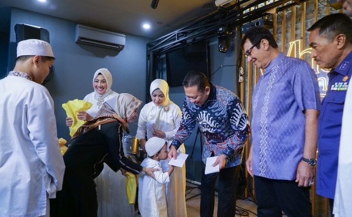 “Santunan terhadap anak yatim piatu ini bukanlah sekadar acara seremonial yang menjadikan mereka sebagai objek. Melainkan sebagai bentuk uluran tali kasih kita kepada mereka yang merupakan bagian dari generasi penerus bangsa. Sekaligus uluran tali sayang kita kepada mereka, bahwa walaupun orang tuanya telah tiada, mereka masih memiliki kita semua sebagai saudara seiman, sekaligus saudara sebangsa dalam bingkai kasih sayang kemanusiaan,” ujar Bamsoet usai memberikan santunan kepada anak yatim piatu bersama GERAK BS, di Tamarind and Lime, Jakarta, Kamis (13/4/23).