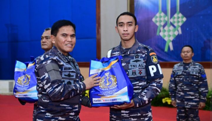 Jakarta, 14 April 2023. “Maknai hikmah Ramadan dengan cara membangun semangat untuk berbagi, diantaranya melalui pemberian paket lebaran kepada segenap prajurit dan PNS TNI Angkatan Laut (TNI AL) di seluruh wilayah Indonesia secara serentak.” Demikian disampaikan Kepala Staf Angkatan Laut (Kasal) Laksamana TNI Muhammad Ali dalam sambutannya pada acara Pemberian Paket Lebaran dan Bazar Murah bertempat di GOR Serbaguna, Detasemen Markas (Denma), Mabesal, Cilangkap, Jakarta Timur, Jumat (14/04). Lebih lanjut Kasal menyampaikan bahwa dalam rangka menyambut hari kemenangan, acara pemberian paket lebaran ini sebagai wujud perhatian dan kepedulian pimpinan TNI AL. Pelaksanaan program pemberian paket lebaran tahun ini sebanyak 75.000 paket sembako yang disalurkan untuk seluruh prajurit TNI AL dari Sabang sampai Merauke bekerja sama dengan mitra Bank, diantaranya Bank Mandiri, Bank BNI, Bank BRI, dan Bank Syari’ah Indonesia. Dalam kesempatan ini, Kasal Laksamana TNI Muhammad Ali berkesempatan untuk berinteraksi langsung dengan para prajurit jajaran TNI AL di masing-masing Komando Utama TNI AL di seluruh Indonesia melalui sambungan Video Conference (Vicon). Selain pembagian paket sembako, dilaksanakan juga kegiatan bazar murah di lingkungan Markas Komando (Mako) dan instansi TNI AL seluruh Indonesia. “Bazar murah dipastikan harganya lebih murah dari harga pasaran untuk meningkatkan kesejahteraan bagi prajurit dan juga kehadiran TNI AL dapat memberi manfaat bagi masyarakat di sekitar wilayah Markas TNI AL dari Sabang sampai Merauke”, ujar Kasal kepada seluruh prajurit TNI AL yang melaksanakan Vicon. Sebelum menutup kegiatan tersebut Kasal menekankan kepada seluruh prajurit TNI AL dalam rangka menyambut Hari Raya Idul Fitri 1 Syawal 1444 H Tahun 2023 untuk terus memupuk semua kebaikan yang telah dilakukan selama bulan Ramadan. “Kehidupan sosial bermasyarakat yang dilandasi semangat empati dan toleransi, peduli dan berbagi, sebagaimana kita laksanakan selama Bulan Suci Ramadan, harus selalu dipupuk dan dikembangkan baik dalam lingkup keluarga, masyarakat maupun kedinasan”, tegas Kasal. Setelah acara Pemberian Paket Lebaran dan Bazar Murah serta pelaksanaan Vicon dengan jajaran TNI AL di seluruh Indonesia, Kasal beserta para pejabat utama Mabesal melaksanakan peninjauan ke stand-stand bazar TNI AL yang berada di lingkungan Mabesal. Demikian berita Dinas Penerangan Angkatan Laut. (Red/LR).