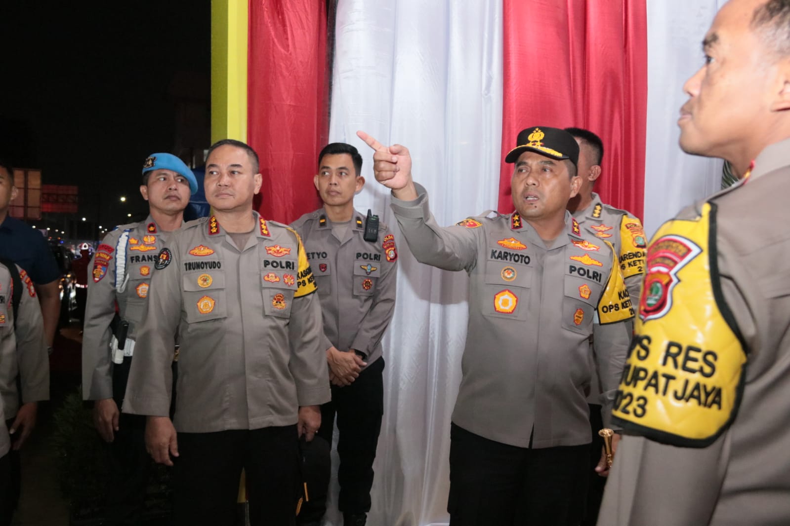POLDA METRO JAYA — Kapolda Metro Jaya Irjen Pol Karyoto bersama pejabat utama Polda Metro Jaya meninjau arus lalu lintas di KM 9 tepatnya di simpang susun Cikunir Tol Jakarta-Cikampek, Pondok Gede, Kota Bekasi, Rabu (19/4/2023).