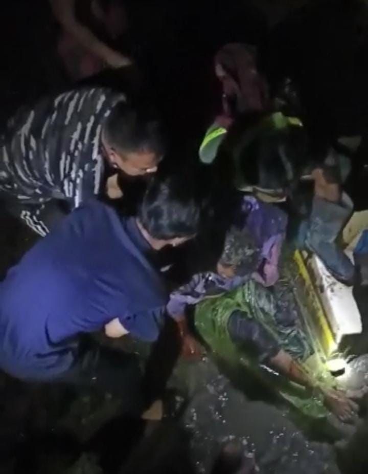 Personel TNI AL dan warga segera ke lokasi untuk membantu korban agar terlepas dari gigitan buaya tersebut. Setelah berhasil lepas dari gigitan buaya, korban ditarik ke tepian sungai oleh Komandan Pos Angkatan Laut dan dievakuasi ke Puskesmas Sumur untuk dilakukan pertolongan medis.